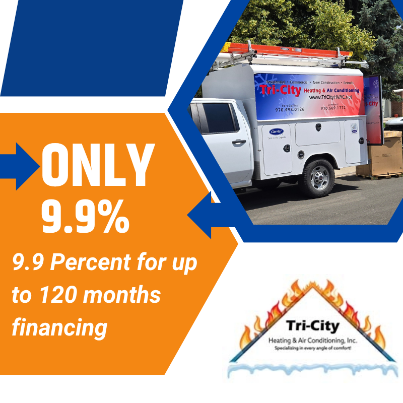 Need Financing? At Tri-City heating and Air Conditioning we offer one of the best in class financing options. Zero interest and payments on select services/installations.